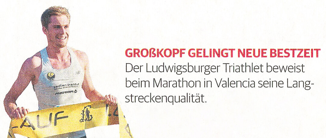 VALENCIA/LUDWIGSBURG. Rückschläge hatte Julian Großkopf in der abgelaufenen Triathlon-Saison einige zu verkraften: eine gebrochene Hand, Probleme im Bein und schließlich eine anstehende unvermeidbare Operation. Dass die Saison dennoch versöhnlich endet, liegt auch an seinem starken Auftritt beim Marathon in Valencia.